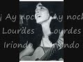 Ay, noche!/ ¿Qué te ocurre/ en el silencio?// Pones triste el corazón./ Nos oscureces la mente./ En la soledad/ el viento llora./ El mar se queda mudo/ al venir tú// ¡Ay, noche!... // Me haces recordar/ que también es oscuro este mundo en el que vivimos,// que hay mucho miedo, odio, maldad e injusticias tristes.// Pero de noche sueño/ que mañana por la mañana el mundo será mejor,/ que en la negra noche de los hombres la paz, la esperanza y un nuevo amor/ renacerán,/ que en la negra noche de los hombres,/ renacerá la paz en la noche, en el silencio,/ la promesa de la luz/ mañana por la mañana,/ en la noche, en el silencio más absoluto,/ la promesa de la luz,/ en la noche negra de los hombres.